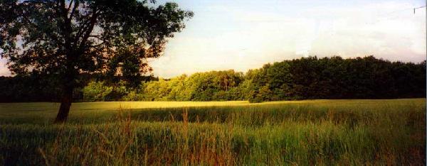 The woods to the west continue on to the north, and on to this view of the woods to the east, in front of the farm house. Incidentally the background of poppies was taken in this corn field. Off to the right is a small vineyard (Château de Barradis, which is a Côtes de Bergerac).